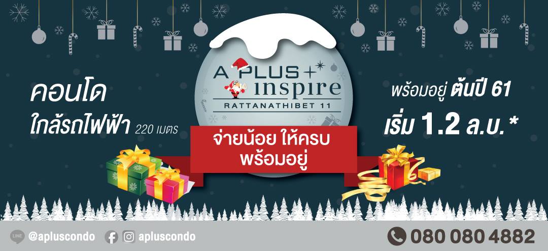 A Plus inspire รัตนาธิเบศร์ 11 มอบของขวัญปีใหม่ แด่คุณจองและทำสัญญาภายในเดือนธันวาคมนี้ฟรี !!! เฟอร์+แอร์+เครื่องใช้ไฟฟ้า เริ่ม