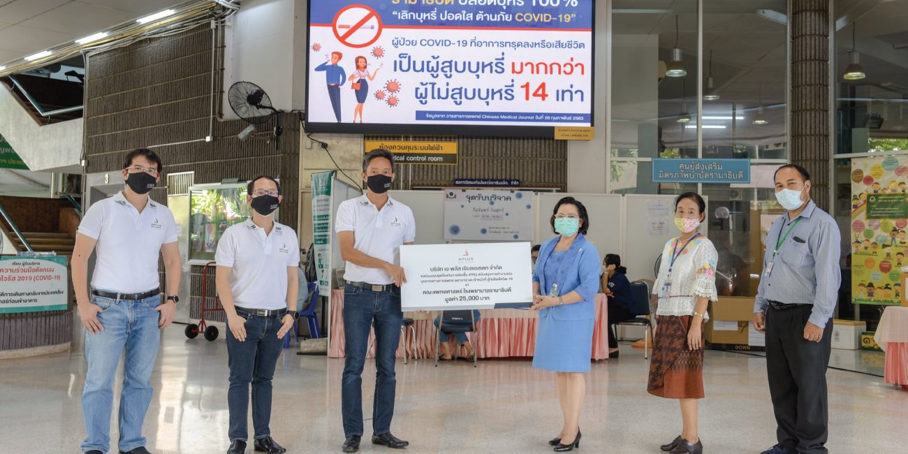 ASHER CONDO ร่วมบริจาคต้านภัยโควิด-19เพื่อสนับสนุนบุคลากรทางการแพทย์นำโดยคณะผู้บริหารบริษัท เอ พลัส เรียลเอสเตท จำกัดร่วมกันบริจาคเงินสดสนับสนุนจำนวน 15,000 บาท,หน้ากาก Face